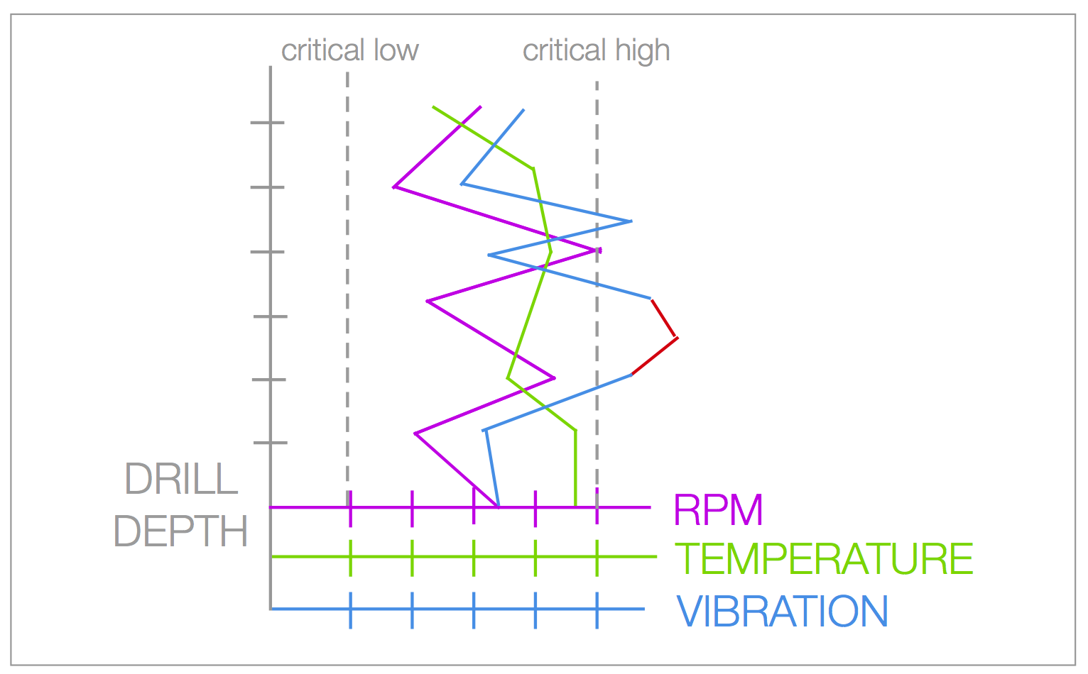 However nothing surprises you as much as real world use cases. To date, I've never seen such a complicated - and very valid - use case of using a chart with multiple X axes, and the Y axes cleverly monitoring the depth of the drill.